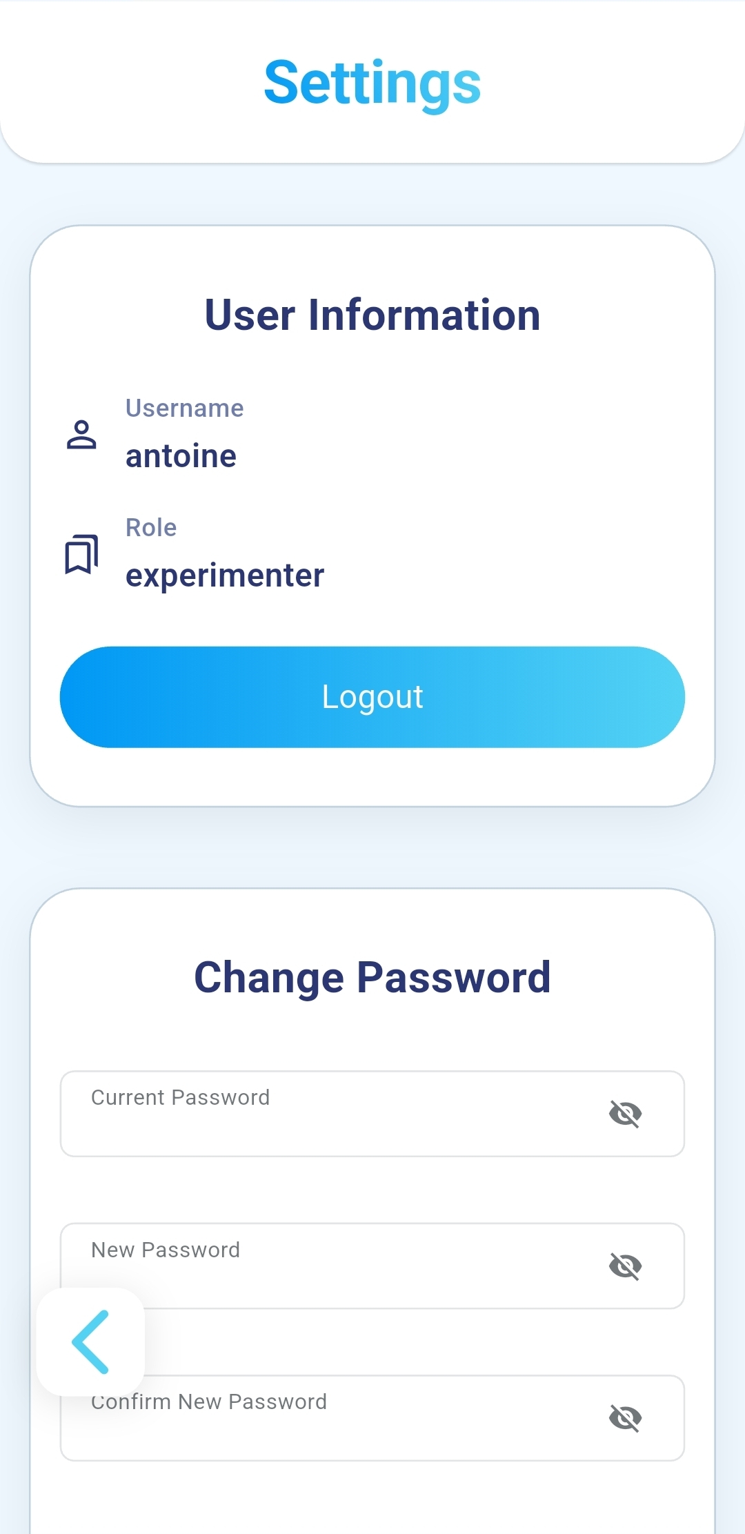 - Your user information will be displayed: Username, Role.