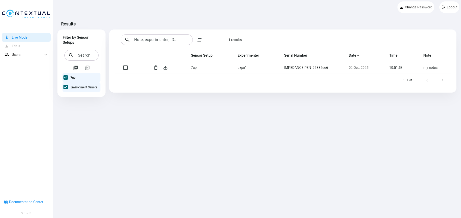 - Step 5 : After logging in to the platform, you can access your data. It can be downloaded as a CSV file. Use the filter and sort features to locate specific measurements (see LIVE mode section for further details).